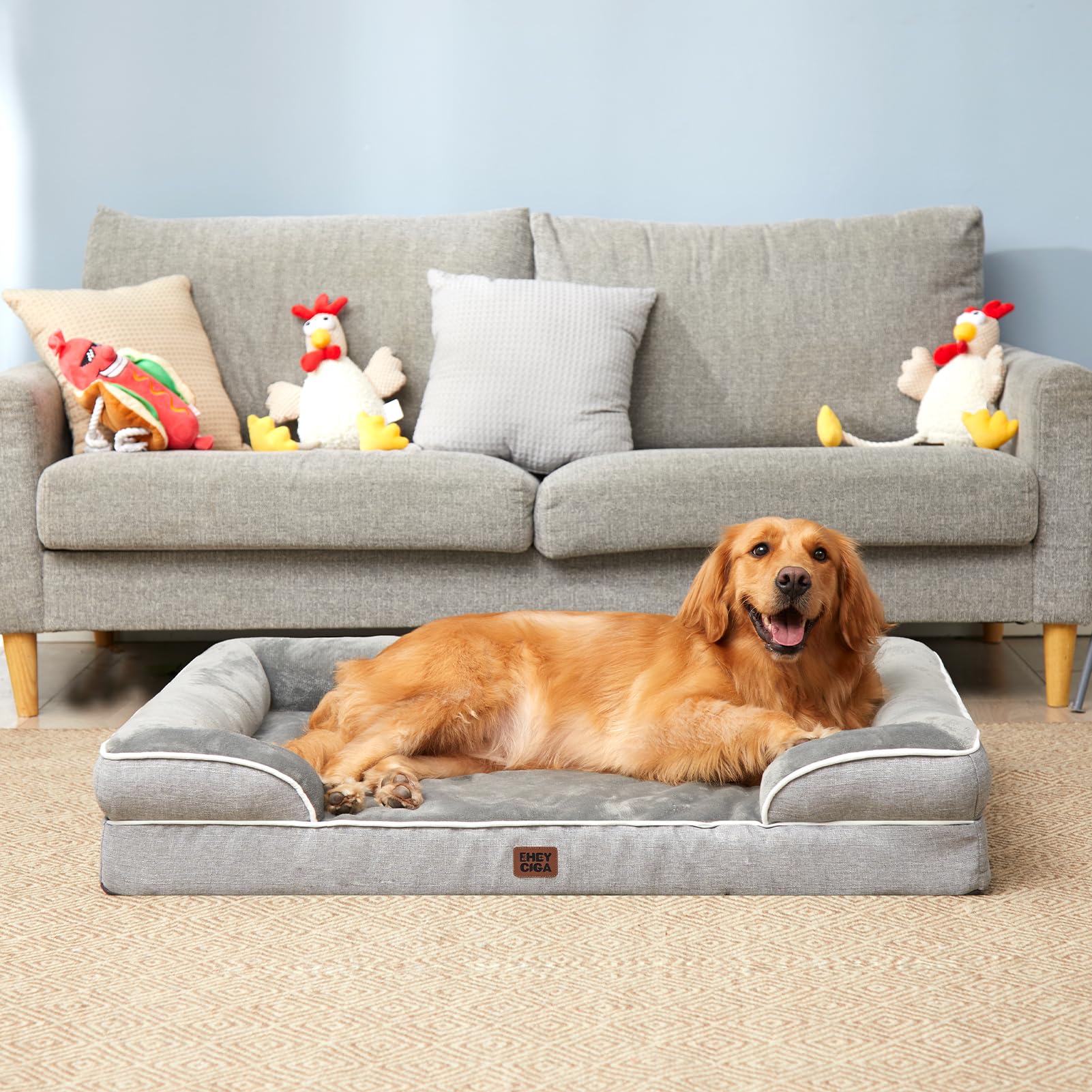 EHEYCIGA Orthopedic Dog Beds for Extra Large Dogs 44x32Inch, Waterproof Memory Foam XL Pet Bed with Sides, Non-Slip and Egg-Crate Foam Big Dog Couch Bed with Washable Removable Cover, Grey