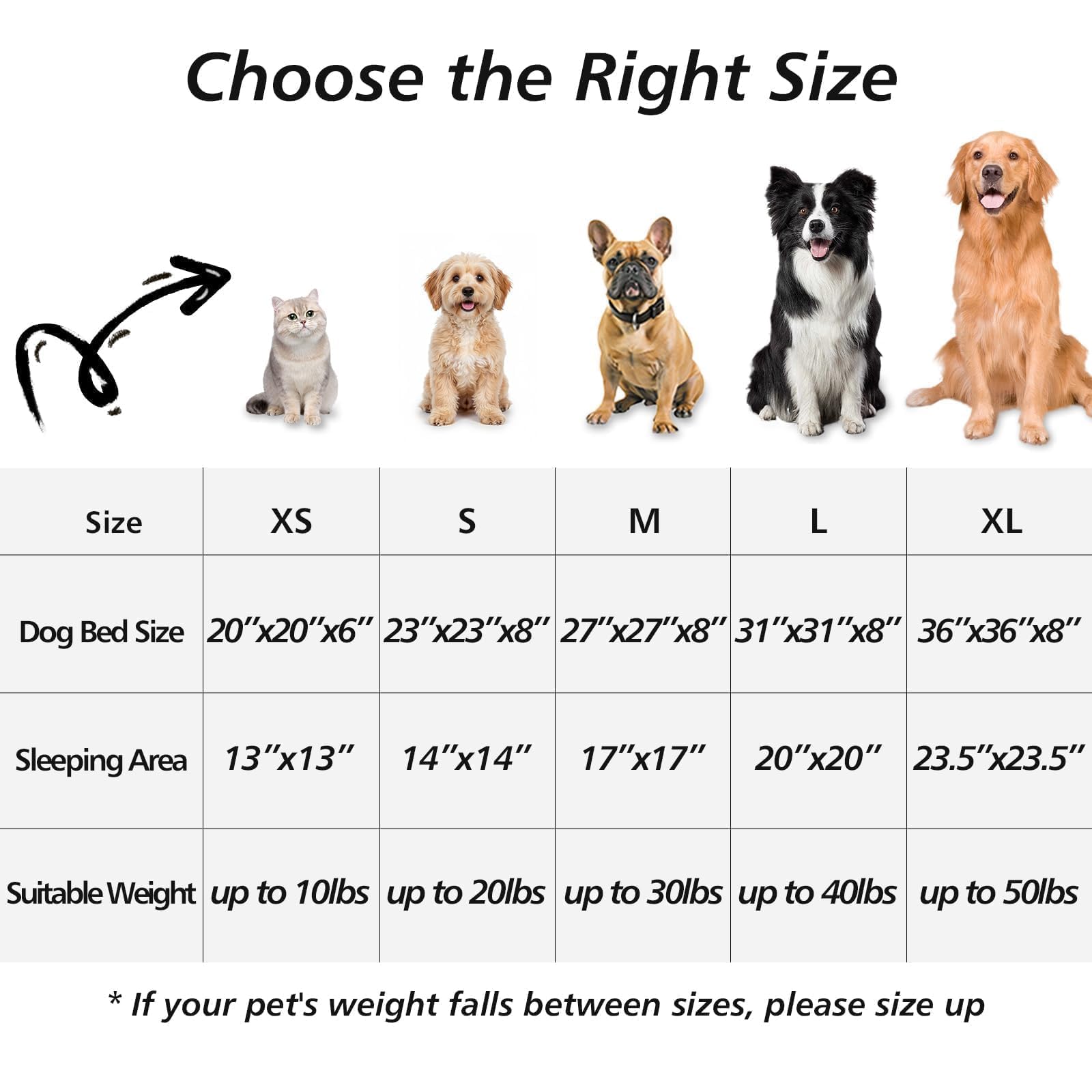 • Choose the Perfect Size for Your Pet: We recommend referencing the weight limit and sleeping style: 20-Inch: Pets up to 15 lbs (Kittens, Chihuahuas, Yorkies); 23-Inch: Pets up to 25 lbs (Pugs, Frenchies); 27-Inch: Pets up to 35 lbs (Beagles, Spaniels); 31-Inch: Pets up to 45 lbs (Bulldogs, Corgis); 36-Inch: Pets up to 75 lbs (Labradors, Golden Retrievers). Pro Tip: When in doubt or if your pet loves to stretch out, always size up for extra comfort