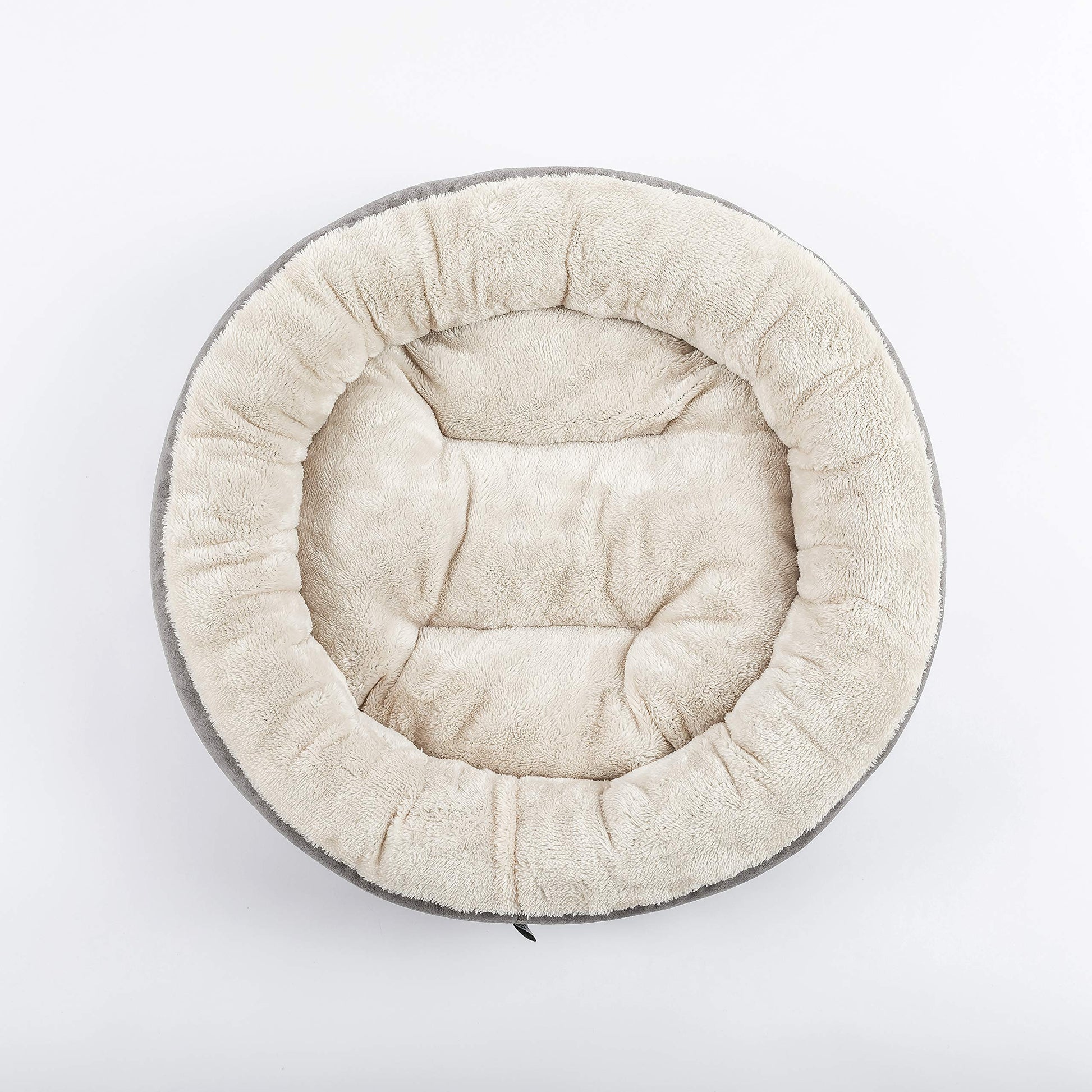 • Donut Cuddler Shape: The round dog bed allows pets to curl up while the raised rim creates a sense of security and provides head and neck support. Premium ultra-soft filling offers joint and muscle pain relief, is a great choice for elderly or sick dog pets. The 20 inch round pet bed is perfect for cat or puppy and other pets up to 11 lbs.